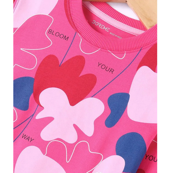 Brighten up your child’s wardrobe with this pink full-sleeve sweatshirt featuring bold and playful floral-inspired abstract prints in shades of red, pink, and navy blue. Adorned with motivational text like “Bloom Your Own Way”, this sweatshirt combines comfort with cheerful style, making it perfect for everyday wear.