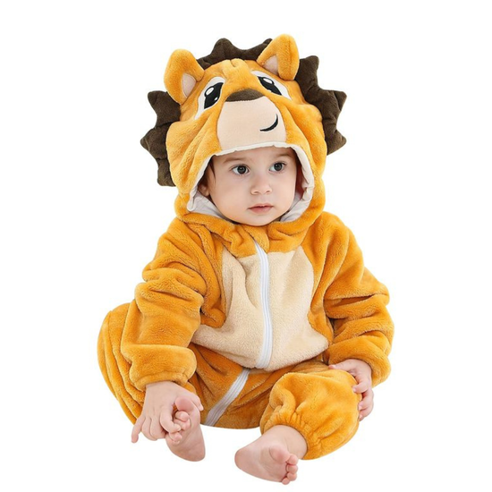 Michley- Unisex Baby Winter Hooded Romper Flannel Lion Style Stitch Animal Long Sleeves Zip Cosplay Dress