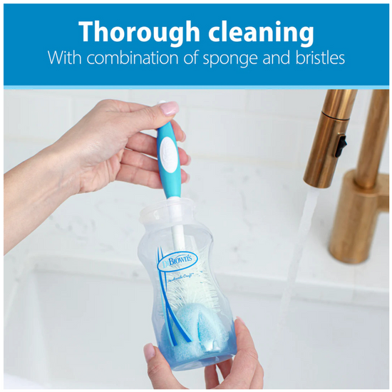 The Dr. Brown’s Bottle Brush is designed specifically for all Dr. Brown’s bottles and features a combination bristle and sponge head to thoroughly scrub bottles clean. A built-in storage clip houses the brush within easy reach.