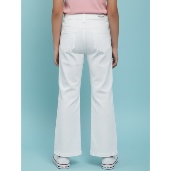 London Street Trendy Woven Full Length Flared Denim Jeans with Patch Detail - White