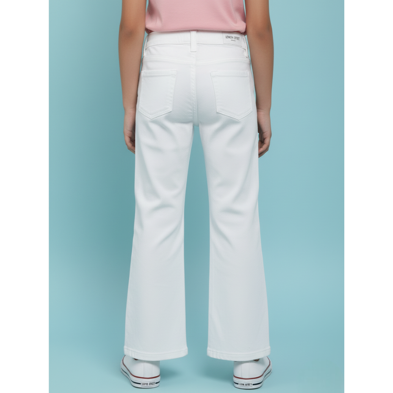 Add a fun twist to her everyday style with these NINOS girls’ white flared jeans. Crafted from a soft and durable cotton denim blend, these jeans feature a trendy flared leg, slim thigh fit, and colorful embroidered patches that bring a cheerful, playful vibe. The popsicle and rainbow details add sparkle and charm, while the classic 5-pocket design ensures practicality and comfort. Perfect for parties or casual outings, these jeans pair beautifully with bright tops or tees.