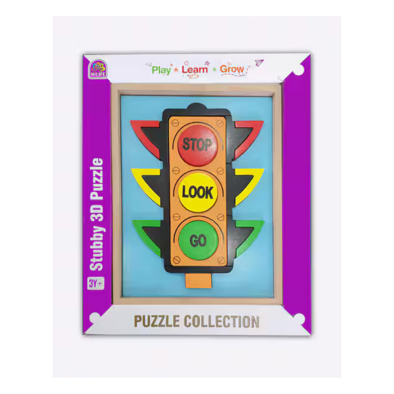 Pave the way for your child to become a responsible citizen with the stubby 3D traffic light puzzle. A fun, educational game, this 3D traffic light puzzle is best suited for kids aged 3-years and above. Comprising of 12 brightly-coloured puzzle blocks in different shapes and depicting illustrations of traffic lights - red, amber, and green - along with their meaning, hilife's stubby 3D traffic light puzzle is an amusing way to teach young minds all about the importance of following traffic rules while boosting their skills of solving puzzles, recognizing colours and understanding basic structures seen in daily life. This educational game not only boosts your child's problem-solving abilities but also helps develop cognitive abilities, fine motor skills as well as hand-eye coordination. With the HILIFE stubby 3D traffic lights puzzle, ignite the spark of curiosity in your child's mind and watch their brain develop at an alarming speed!.