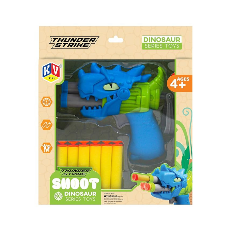 - Thunder Strike Dino Shoot Gun:- Comes with 6 soft foam darts to start the fun. (Blue Color)