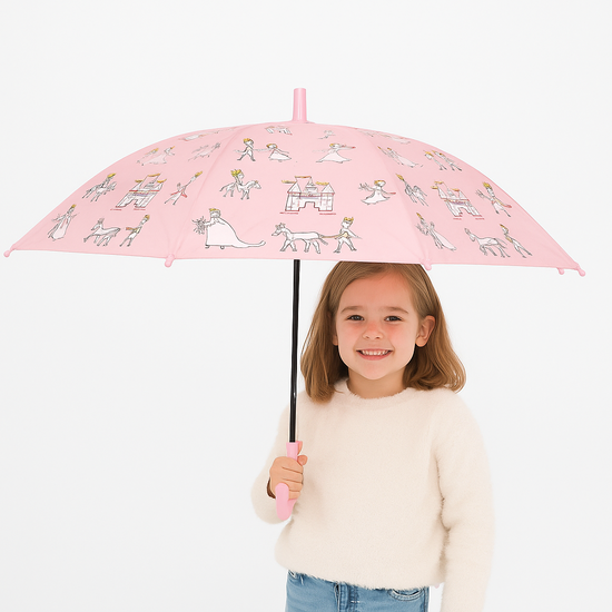 Turn rainy days into fairy tales with this adorable princess-themed umbrella for kids. Featuring a charming pink canopy decorated with castles, carriages, and princess characters, this lightweight umbrella adds a touch of magic to any little girl’s day while keeping her dry and cheerful.